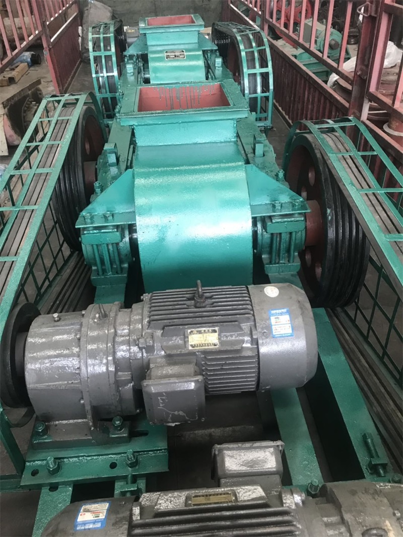 當物料進入機器的破碎腔以后,物料受到轉(zhuǎn)動輥軸的嚙力作用,使物料***通過兩輥之間,同時受到輥軸的擠軋和剪磨,物料即開始碎裂,碎裂后的小顆粒沿著輥子旋轉(zhuǎn)的切線,通過兩輥軸的間隙,向機器下方拋出,超過間隙的大顆粒物料,繼續(xù)被破碎成小顆粒排出。